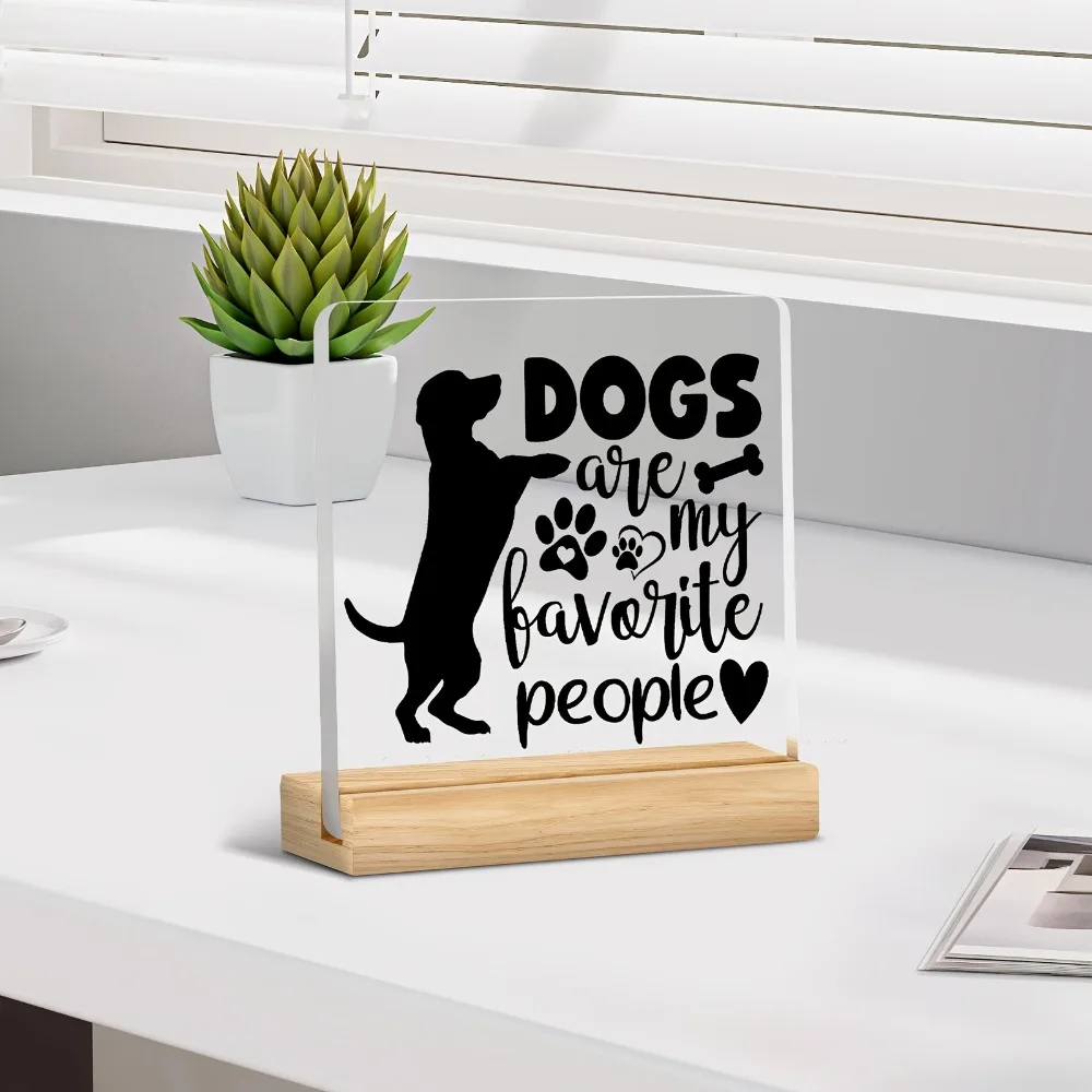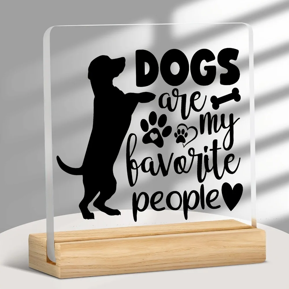 Featuring a charming dog silhouette and the playful phrase “Dogs Are My Favorite People,” this piece is designed to make you smile every time you see it. The clear acrylic panel paired with a natural wood base creates a clean, stylish look that fits beautifully on desks, shelves, nightstands, or office spaces.